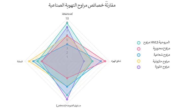 - المراوح الشعاعية (Radial): فعّالة في خطوط الإنتاج التي تحتاج إلى ضغط هواء مرتفع