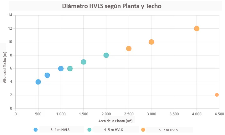 El tamaño de la instalación y la altura del techo son factores determinantes para asegurar una correcta circulación del aire. En espacios de gran volumen con techos altos, los ventiladores de baja capacidad resultan insuficientes y provocan estancamiento del aire en determinadas zonas. Esto genera diferencias de temperatura, acumulación de humedad y disminución del confort laboral. En tales instalaciones se deben preferir ventiladores de alto caudal y amplia cobertura. En particular, los ventiladores HVLS ofrecen en estos entornos un flujo de aire equilibrado sobre una gran superficie.