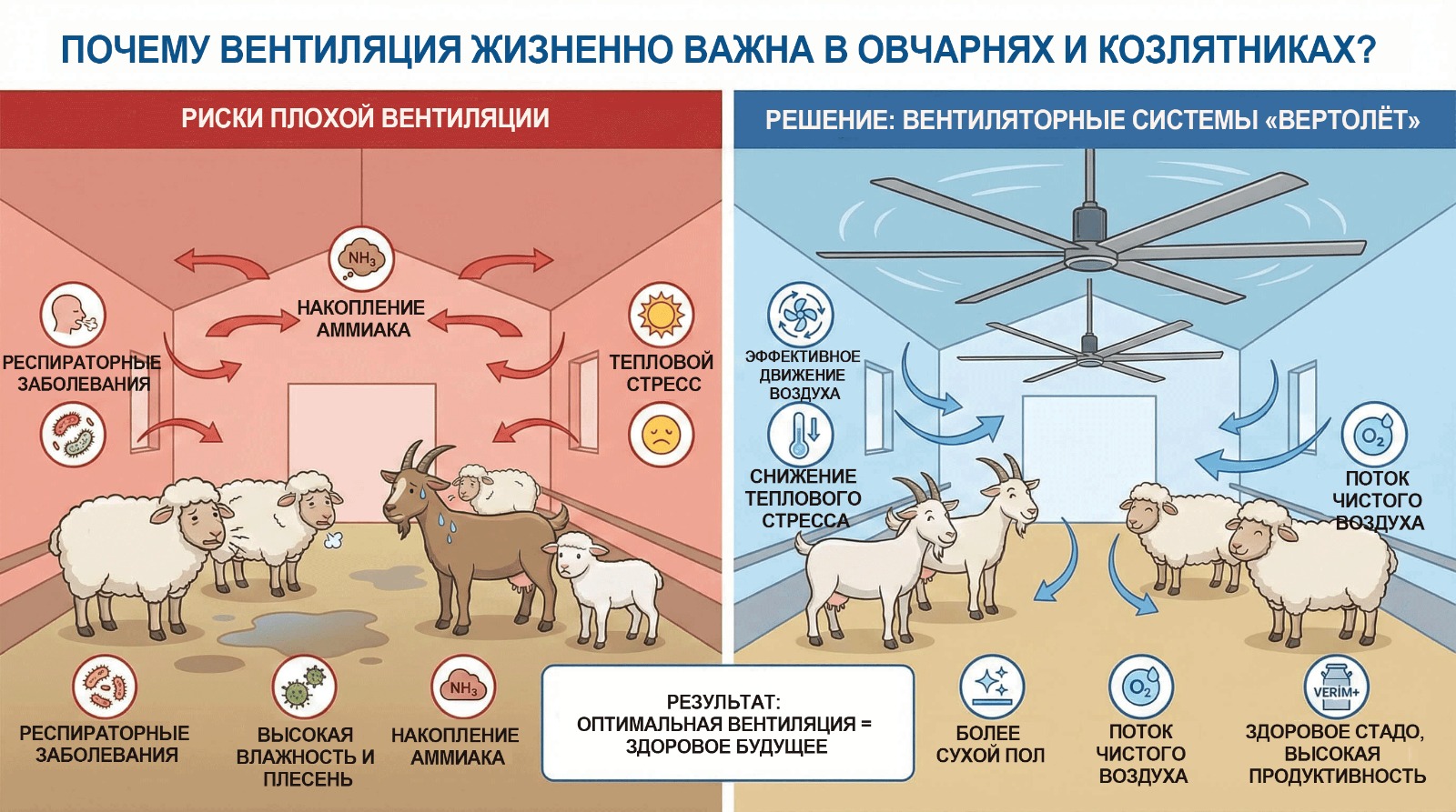 Нежная структура лёгких мелкого рогатого скота может серьёзно пострадать даже при незначительном ухудшении качества воздуха в закрытых помещениях. Влага, накапливающаяся внутри загона, и газы, образующиеся из навоза, напрямую повреждают дыхательные пути животных, открывая путь к трудноизлечимым заболеваниям. Не только устранение неприятных запахов, но и постоянное поддержание свежего уровня кислорода — это не выбор, а необходимость для сохранения сильного иммунитета стада. При отсутствии притока свежего воздуха животные тратят дополнительную энергию на терморегуляцию, что напрямую приводит к резкому снижению мясной или молочной продуктивности.