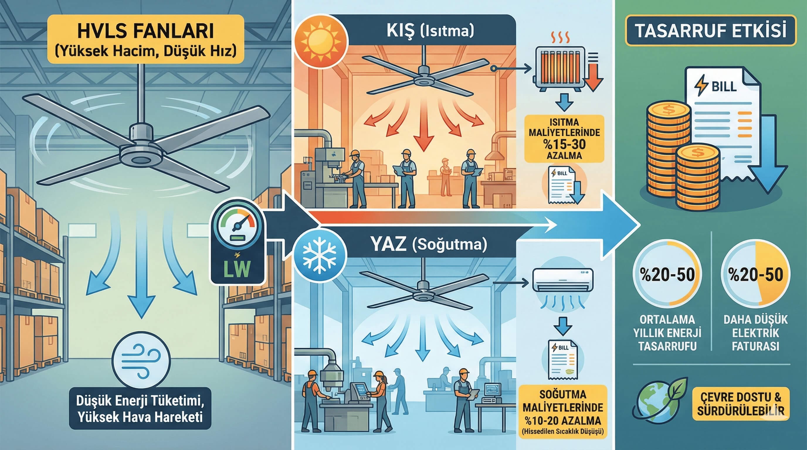 Standart Endüstriyel Fanlar ile HVLS Fanların İşletme Maliyeti Karşılaştırması